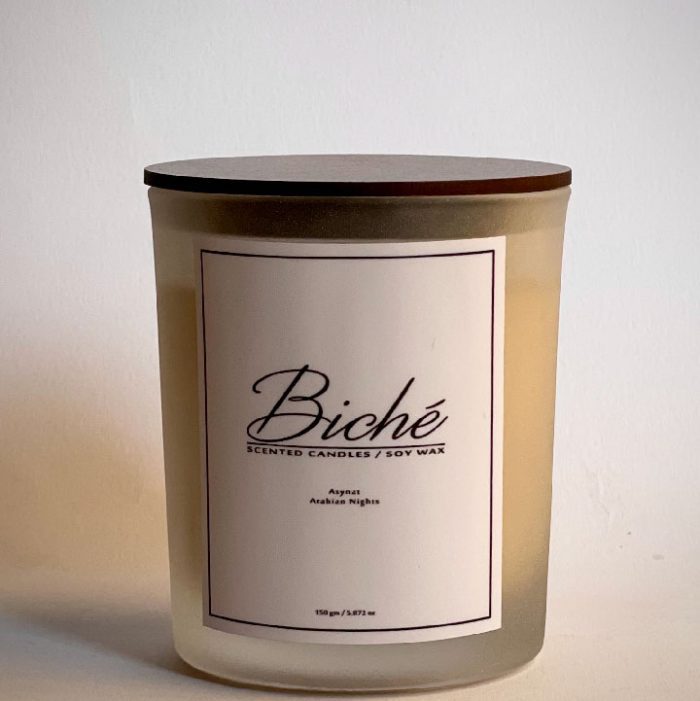 A natural scented candle weighing 150g, infused with Arabian Nights scent. Color: White