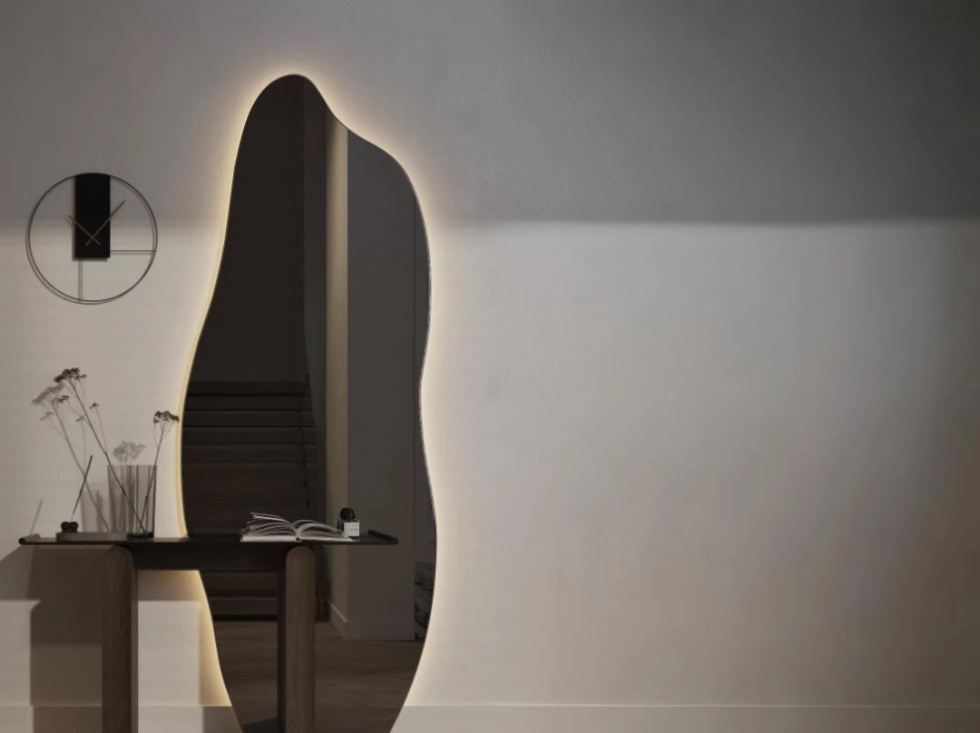 المرايا دي بتتميز بتصميم مودرن انسيابي مصنوع من زجاج عالي الجودة، بتمزج الجاذبية الجمالية مع الوظيفة. حوافها المسحوبة بأناقة بتساهم في مظهر متناغم، وبتقدم مراية حائط فريدة مناسبة لأي مساحة، بتعزز ديكورك وستايلك الشخصي. الأبعاد: ١٧٠×٧٠ سم.