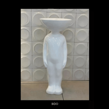 This grey wash basin is a striking and unique piece that adds a touch of exotic and sculptural flair to any modern or contemporary bathroom. This freestanding wash basin is inspired by the iconic Moai statues of Easter Island, featuring a large, rounded head and a minimalist body. The wash basin is crafted from polyester cast in a stone-like finish, adding a touch of natural beauty and durability. Dimensions: 42x90cm.