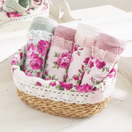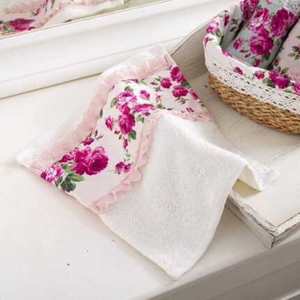 Experience our delightful floral fabric table runner, featuring ruffles adorning its edges, perfect for adding a touch of elegance to your table decor. Color: Pink.