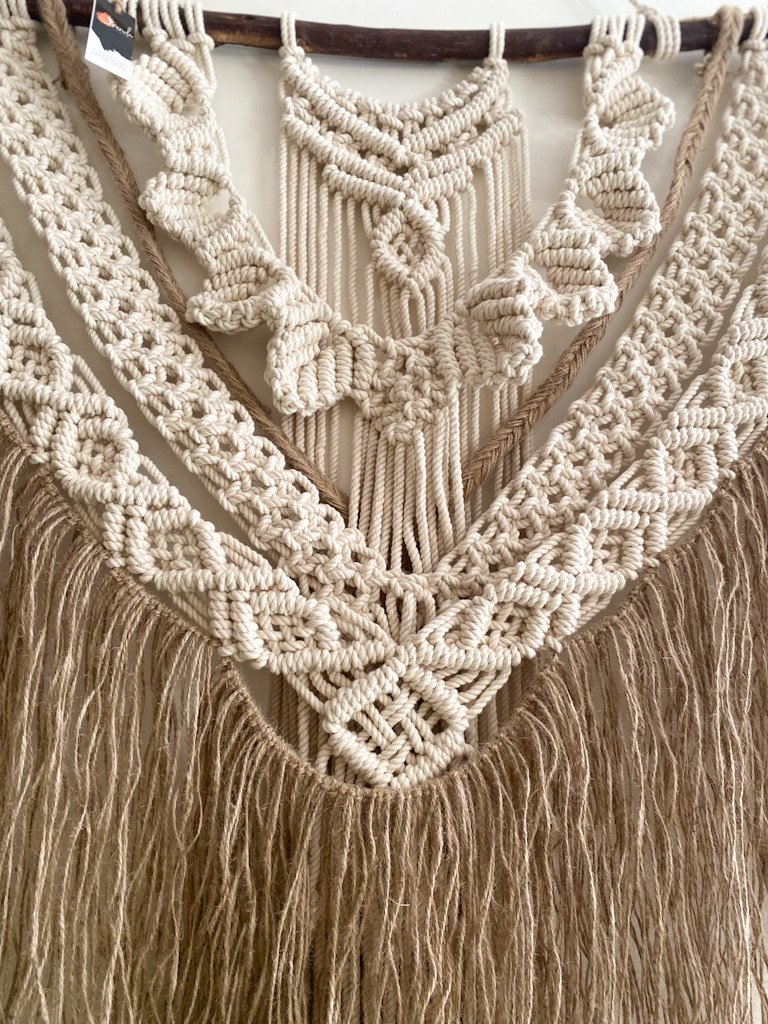 Large macrame wall hanging with tassels of jute