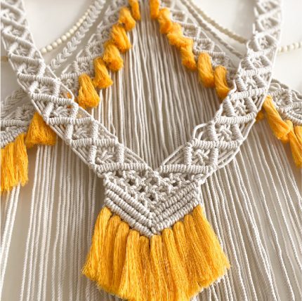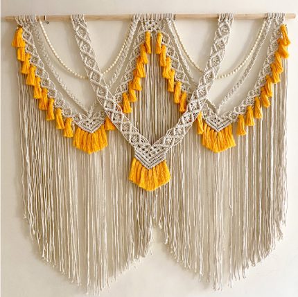 Large macrame wall hanging with tassels of jute