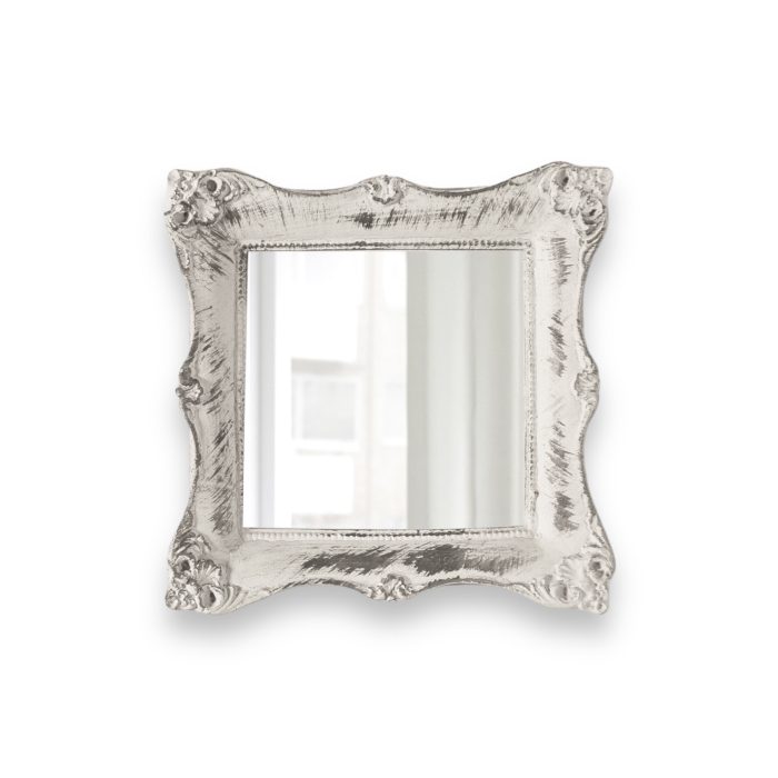 Square Chic Wall Mirror in Antique White. Vintage-inspired with a touch of modern elegance. Color: White