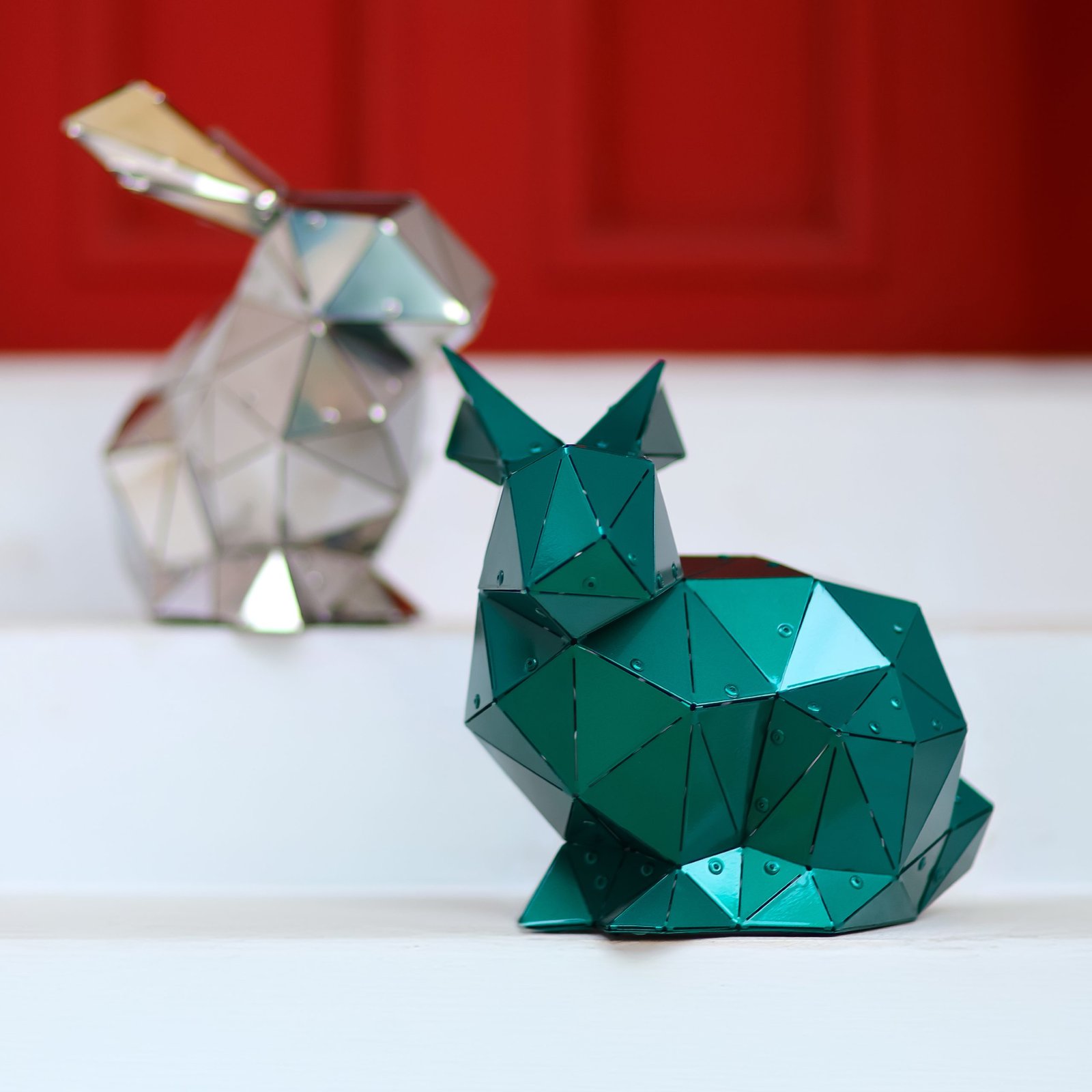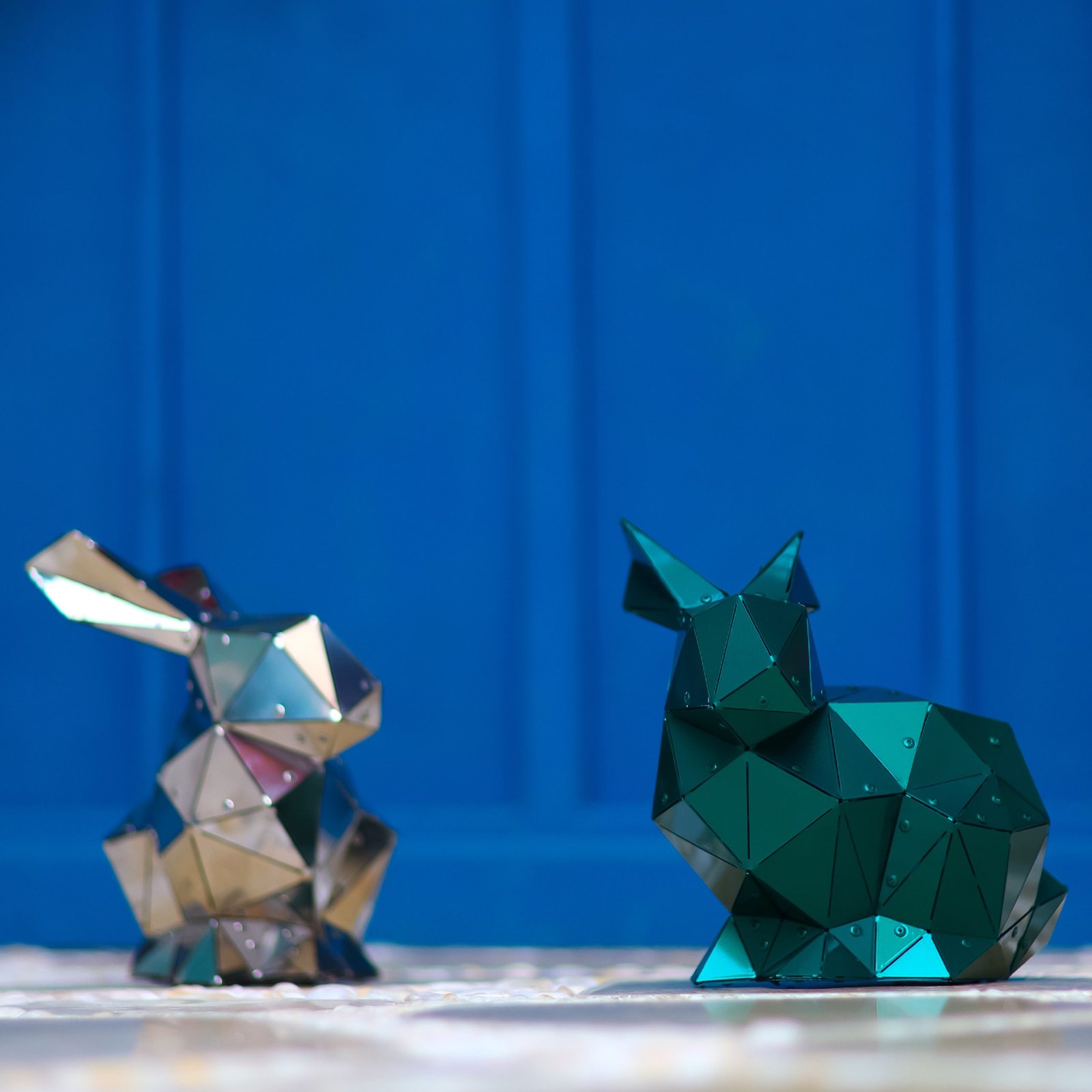 Rabbit Statues, Steel, Silver, 32.3x26x30cm.