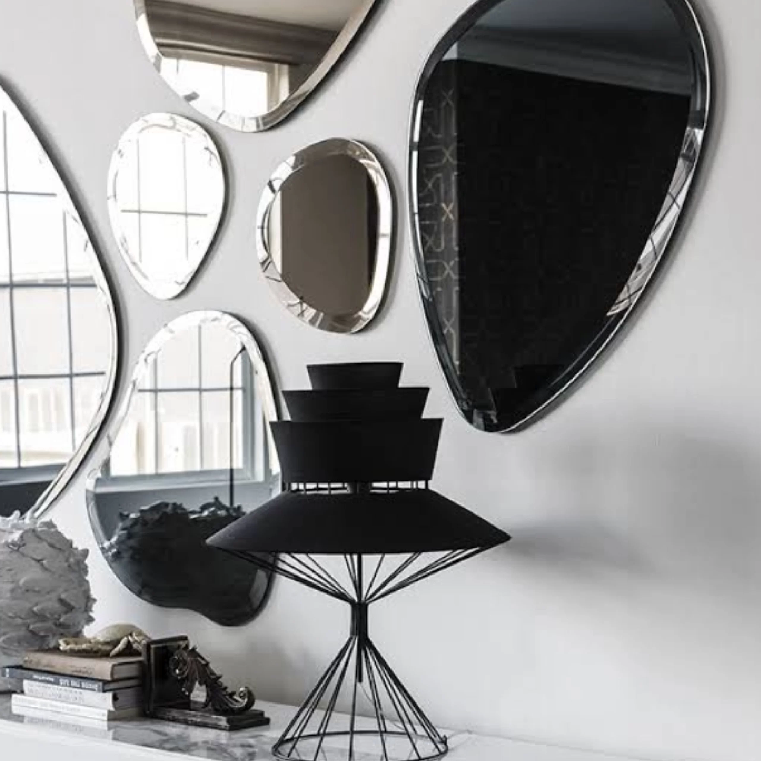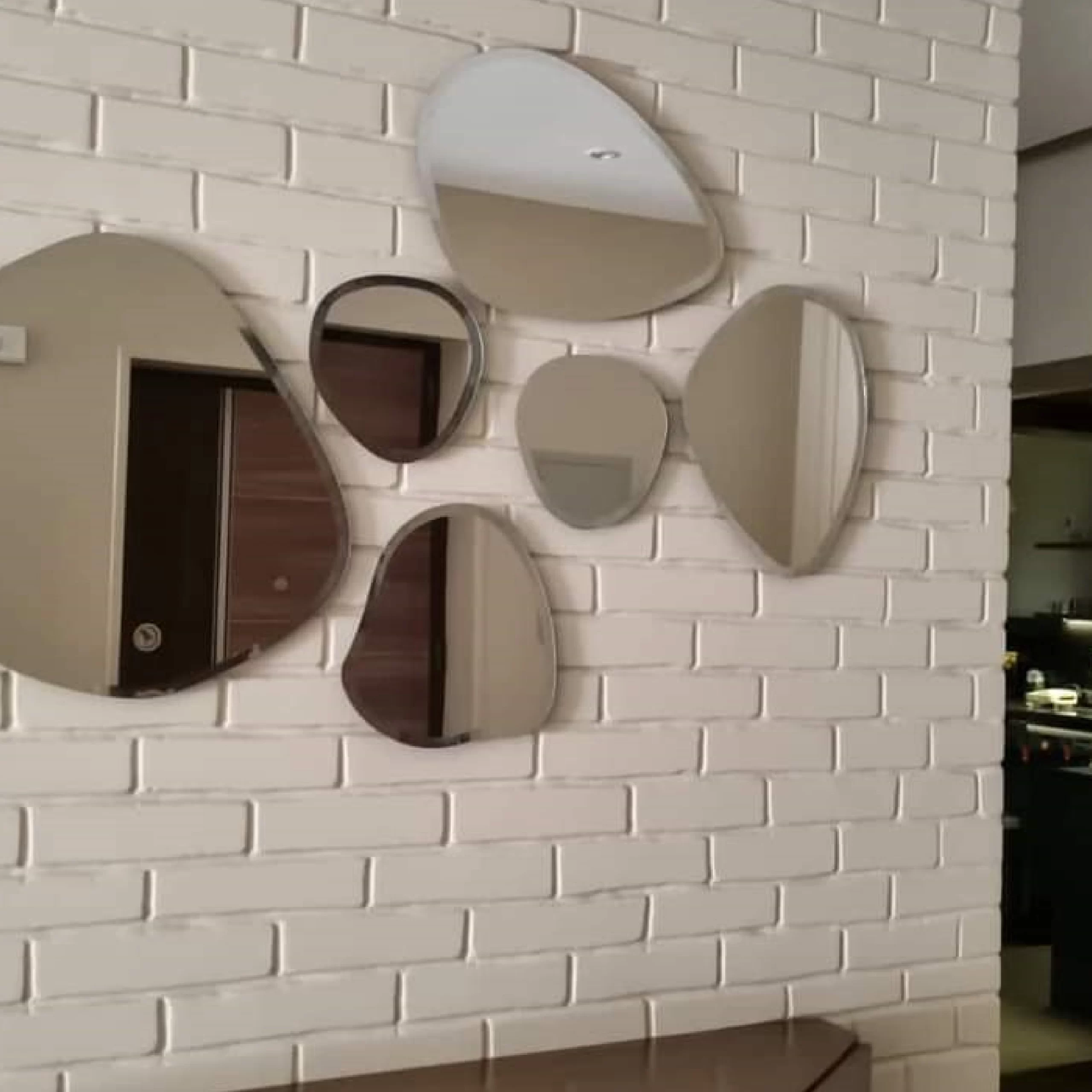 طقم مرايات الحائط ده بيقدم إضافة جميلة وعملية لبيتك. مصنوع من أجود أنواع الزجاج وبيتميز بحواف مشطوفة راقية، تصميمهم القابل للتكيف بيسمح بوضع متعدد الاستخدامات، وبيرفع فوراً أي مساحة بأناقة راقية. الأبعاد: ٥٧.٨٠×٦٢.٢٦ سم، ٤٨.٣٣×٣٩.٢٦ سم، ٣٥.٥٦×٤٣.٧٨ سم، ٣٢.٩٠×٣٤.٨٥ سم، ٢٠.٢٤×١٩.٧٨ سم، ١٩.٤٨×٢٠.١٢ سم.