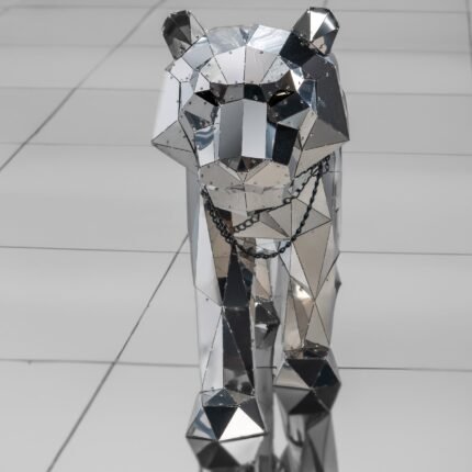 Panther Statues, Steel, Silver, 226.7×46.1×102.8cm.